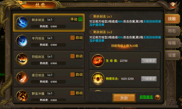 2、技能每使用一次可增加一定的技能熟练度,技能熟练度达到当前上限后将自动提升技能等级,且熟练度重置为0。