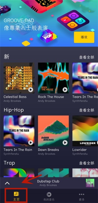 6、可以打开节奏器助你演奏,相同颜色的按钮播放相似的声音,创作出你自己的热门歌曲。
