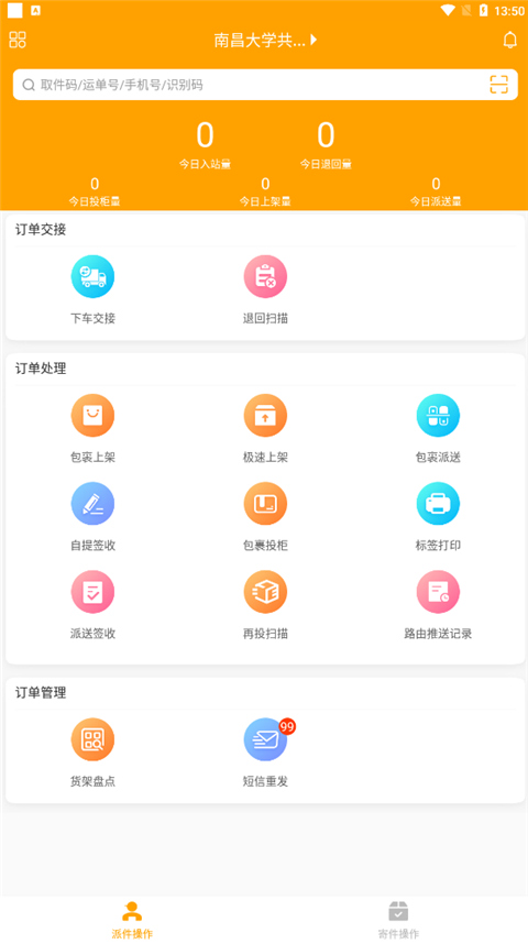 包含了派送业务所需要操作的投柜、上架、签收等操作