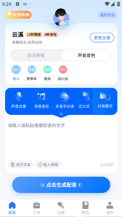 最近我发现了一款挺不错的配音App叫千千配音,感觉它功能挺强大的。这个App可以将文字转成语音,还能选择各种主播的声音和情绪,比如生气、愉悦或者童声,完全可以根据需求来调整。操作起来也挺方便,导入文本后一键生成配音就能用了。特别是它的页面设计还挺直观的,用起来体验不错。