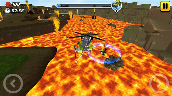 在这个模式下,玩家需要驾驶一架直升机,来拯救被困在海上的人们,只要将光圈放在人物的上方,然后送到船上即可。