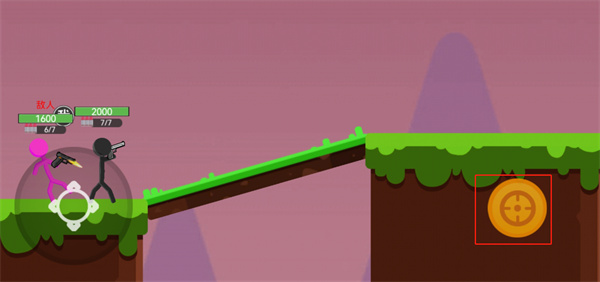 3、玩家可以通过左下角的摇杆来控制开枪的角度;