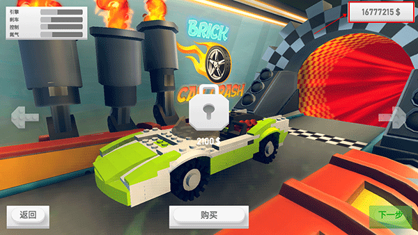 4、然后选择喜欢的积木车,左右切换,未解锁的可以购买,点击“下一步”。