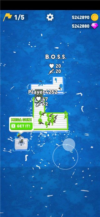 如果你想要体验模拟经营与大乱斗两种游戏类型的游戏,那么不妨来试试筏战疯狂海战这款游戏,这是一款以大型海战为背景的动作乱斗手游,游戏画面简单而复杂,简洁的海洋背景,简单的木筏场景看上去清爽无比。同时游戏玩法简单,在关卡伊始玩家需要尽快救助等待救援的各种战斗人员来扩充自己的兵力,同时收集不同功能的木筏,在扩展领土的同时进一步提升战力,在实力强大之后对地图中的其他势力进行剿灭与吸收。同时游戏延续了真实战争中的消耗机制,玩家的兵力在对抗之后会直接消耗,并没有借鉴一些同类游戏转化为己方实力的设定。除此之外,筏战疯狂海战中还提供了诸多不同火力的兵种,从普通的步兵、到机枪兵,再到持有火焰喷射器的强力兵种,甚至连自动连射步枪也被安装在专属木筏上,化身玩家的强大助力。