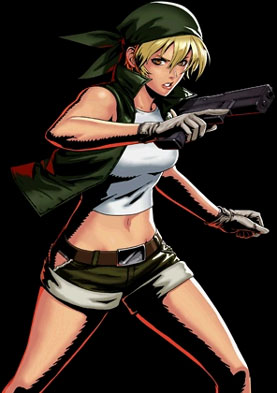 刀砍速度很快且对攻击范围内的所有敌人都有效,其特技机炮拳破坏速度更是一绝(威力5x8,可跳跃取消),单关内中弹2次才算死(有例外是一击死)。他的缺点是走路较慢(中弹后起身走路还会变更慢),而且吃到枪或炸弹时,弹药入手数量比别人少一半。