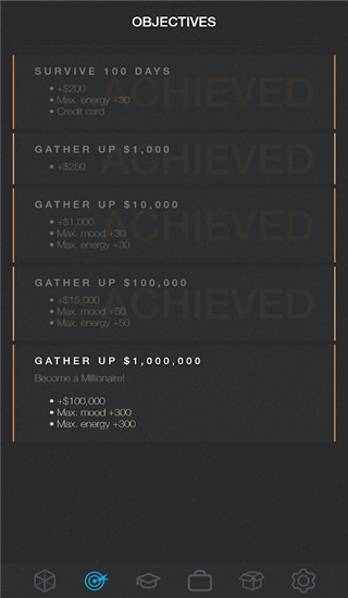 在这款游戏中,你将从社会的最底层做起,体验底层的生活和工作方式,然后你有饥饿值,情感值,还有体力值去工作,你可以做你任何想做的事,发展你的角色,实现目标,购买和出售道具,提升你的技能,在这里,你将决定你如何度过你的一生。没有人可以对你产生任何非议,除非是你在控制。
