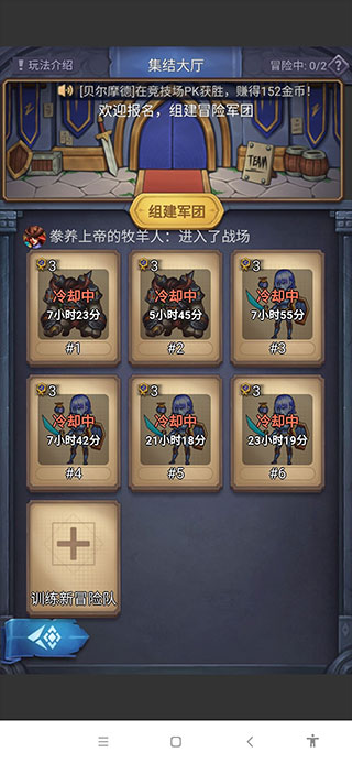 8、冒险:这是提升队伍实力的一个地方,当你培养好一个队伍,可以组建1到10人的冒险队伍,来提升你队伍的一个实力,中途你会碰见各种各样的问题和历险,每种选择都代表不同的方向,走的越远,你的队伍实力提升越高,加油,冒险家们!!!
