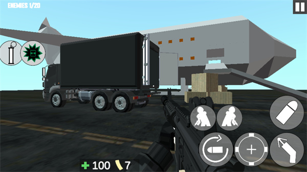 5、然后就可以进入到地图中,左边可以控制人物角色进行移动,右边可以进行射击,换弹,侧边瞄准等;