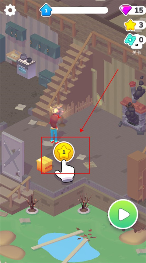 1、首先我们打开游戏,首先需要将这座废弃的房子收拾一番,拖动物品可以将物品放在箱子里