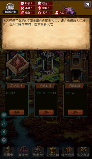 1、创建自己国家时,玩家可以携带一些卡牌作为初期助力带入游戏