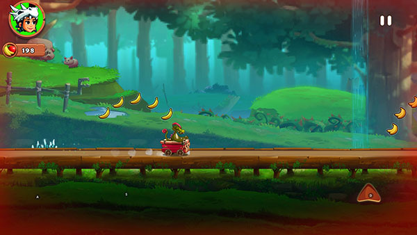 1、先从本站下载好丛林探险4手游官方版,下载完成后,打开游戏,游戏操作简单,我们只要控制角色前进后退,以及跳跃,在收集水果的同时,躲避昆虫。