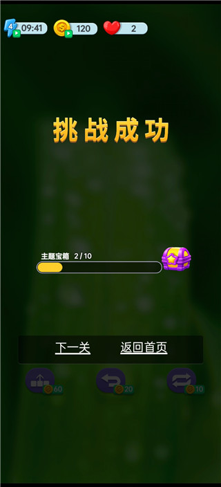 4、挑战成功即可获得红心一颗,同时获得金币奖励,并且离主题宝箱前进一步,随着闯关的深入,可以开更多的宝箱