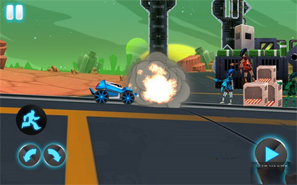 变身汽车侠游戏的风格简洁明快,使用可以变身成为机器人的汽车与外星人进行作战;