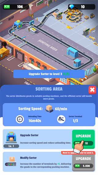1、您可以升级各种技能,购买更多专业的机器进行分类。