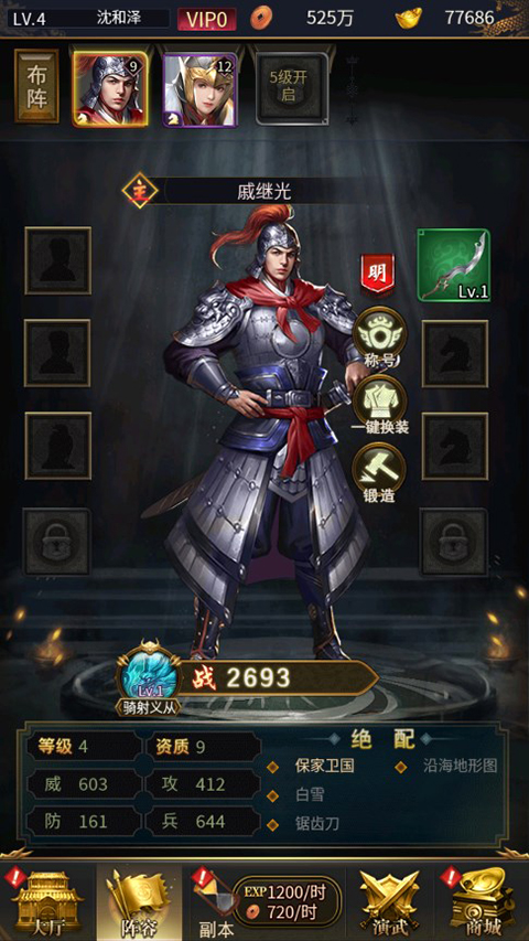 2、完成之后就能获得抗倭名将戚继光,他会引导玩家完成各种基础操作。