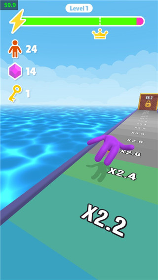 1、上手简单玩家在跑酷的过程中会自动行进,只需拖动控制左右移动即可,简单上手的玩法让玩家能更好地体验游戏的乐趣。