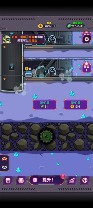 2、通过对矿层升级,可以增加机器人采矿的效率等;