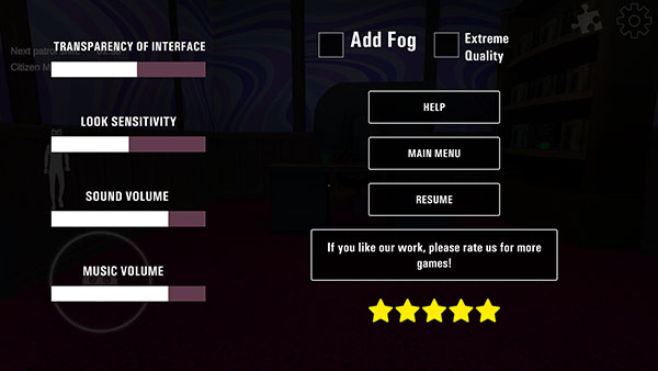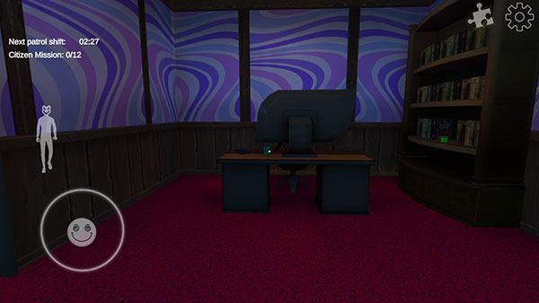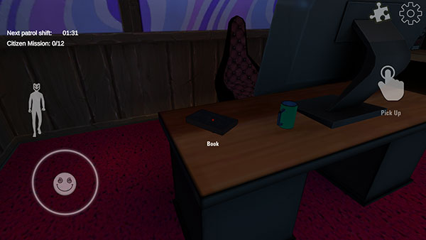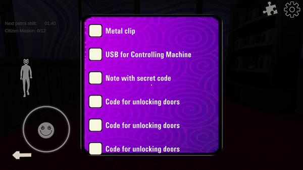操作简单,玩家通过左下角轮盘控制角色移动,右上角拼图块查看任务目标,暂停菜单可调整参数或返回主界面。游戏有多个地图场景,处处隐藏危机,考验玩家的冷静与智慧。