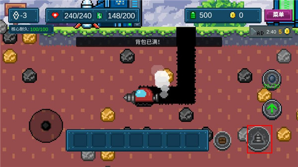 3、可以开始采矿了,升级你的背包,可以存放更多的矿石。
