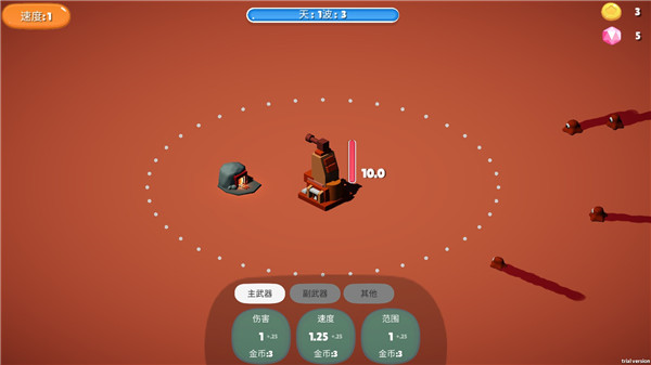 3、当敌人出现时炮塔会自动攻击,当敌人接近时就会破坏炮塔,炮塔被摧毁则游戏失败。