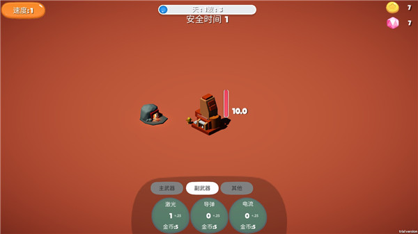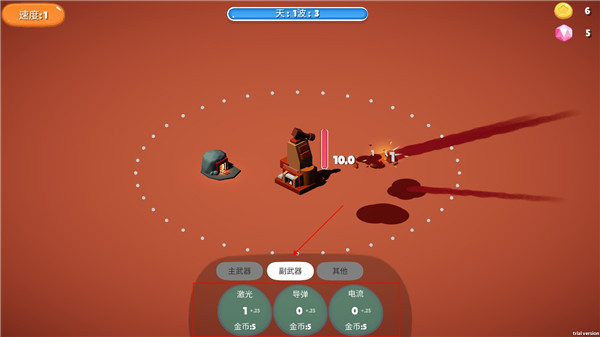 2、当上方的安全时间过去后就会有敌人出现进攻,玩家还可以点击左上角的游戏速度来加快游戏过程。