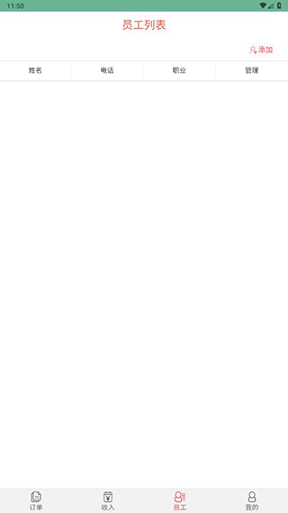 4、恋窝商家版app支持员工管理功能,点击右上角的【添加】按钮,加入员工信息