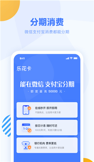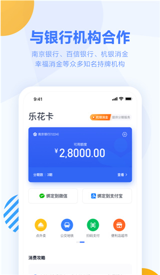 1、分期消费:可绑定微信支付/支付宝消费,能用微信支付宝的地方都能刷;