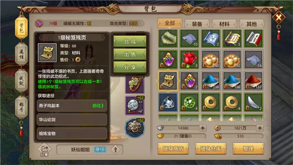 武器、宝物可以通过使用玄天石合成,招式和心法可以通过秘籍残页合成获得。玄天石和秘籍残页可以通过通关老三环副本、华山论剑、熔炼宝物和银两商城购获得。佩戴英雄专属装备,可额外提升潜能效果。
