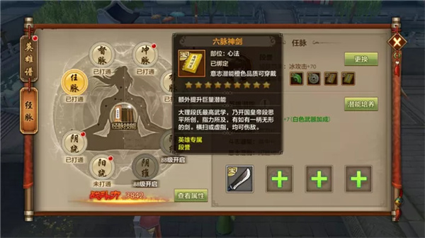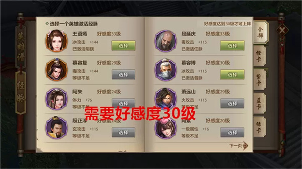 2、英雄需要达到30级好感度才能激活少侠经脉。