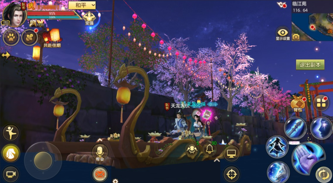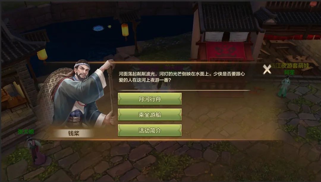 现在天龙江湖船夫钱蒿开放了临江苑游船赏景活动,8月6日至8月12日期间,少侠可两人组队参与月河行舟,乘坐游船欣赏临江苑美景,快带着那个TA去参与吧~