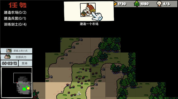 1、在开始还有4名工人就在你身边2、让他们从树矿和木材收集黄金
