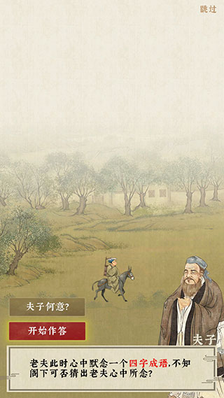 1、进入游戏之后,老夫子心中会默念一个四字成语,我们点击开始作答来进行猜测。