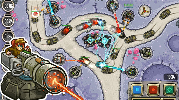 总体来说,游戏还是遵循经典的塔防游戏规则,还是一日既往的以防御敌军的入侵为目标,但与之不同的则是这里采用更加贴合的现代战争技术精心打造,虽说玩法上并没有什么突出,但在特效的制作上可谓非常的良心,就拿防御的工程来说,机枪扫射非常逼真,而且还是自动瞄准的,火力全开的导弹炸裂效果都可谓非常的震撼,而玩家只需要通过建造、升级相应的设施即可,但值得说明的是升级需要一定的缓冲时间,在这个时间段不能进行攻击,也是你最值得注意的地方,往往这都是敌人逃脱的空隙。