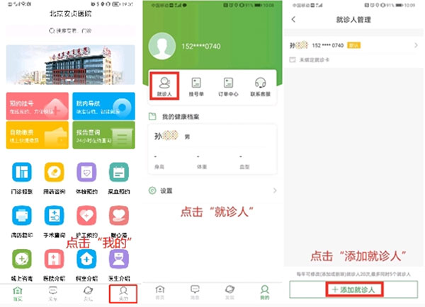 2、【添加就诊人】: