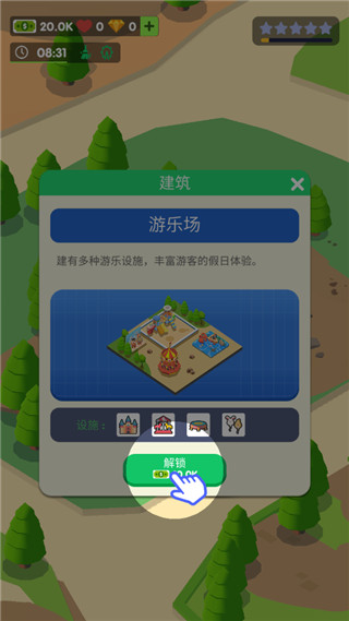 1、首先在本站下载露营地大亨破解版安装后,打开游戏根据系统要求建造游乐设施。