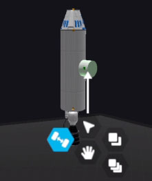 5、接下来用平移工具把燃烧适配器向火箭主体平移,直到看不见油箱,这样一个无限燃料小火箭就做好了。