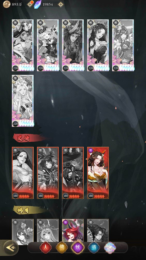 1、游戏内的神将分为人、佛、妖、道、时空五种类型,其中时空为特殊神将,极其强力。