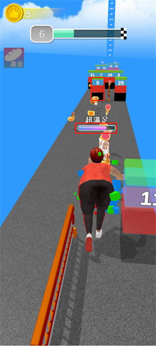 健身房终结者最新版是一款轻松有趣的跑酷手游,画面采用Q版卡通风格,玩家扮演吃货角色,在各种关卡中通过吃食物获取能量来闯关。游戏玩法简单,操作只需要滑动屏幕控制角色左右移动,碰到数字墙消耗对应能量就能前进,但要注意避开地刺等不能碰的障碍物。当能量满时角色会暴走变无敌,跑得更快,还能在终点用拳击打飞假人获得额外奖励。