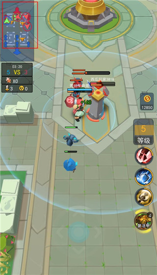 12、左上角还附有游戏的地图,我们可以观察整个游戏的进度,以及队友的一个战况。