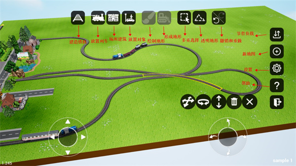 2、上方和右侧为建造功能,你可以建设属于自己的铁路模型;
