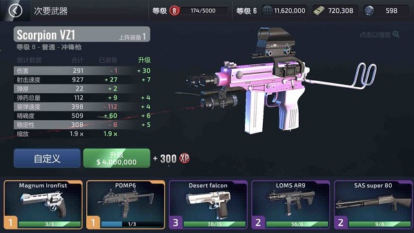 3、武器可完全定制:您可以更换武器颜色、枪管、枪托和瞄准镜。