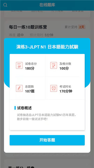 这款app的功能挺齐全的,有错题集、一题一解、练习历史、我的收藏、我的笔记等功能,帮助用户更好地复习和巩固知识点。还有打卡闯关和每日一练等模式,可以检测学习成果。题库类型也很多样化,比如N1、N2考试,甚至考研日语都有覆盖。