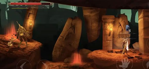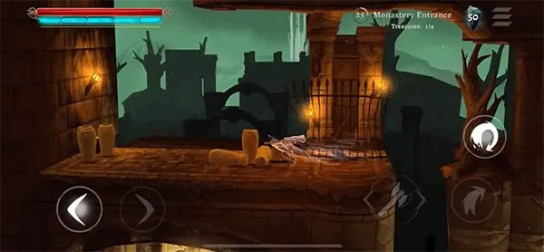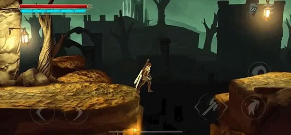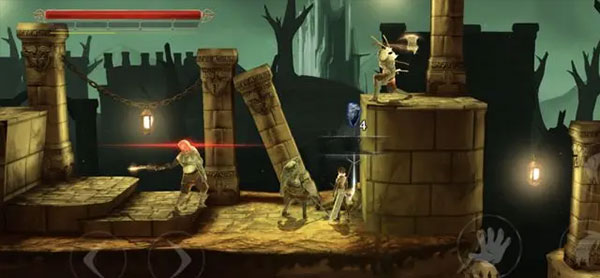 4、其整体操作与横板闯关游戏类似,左边控制移动方向,右边控制攻击、跳跃、冲刺等。