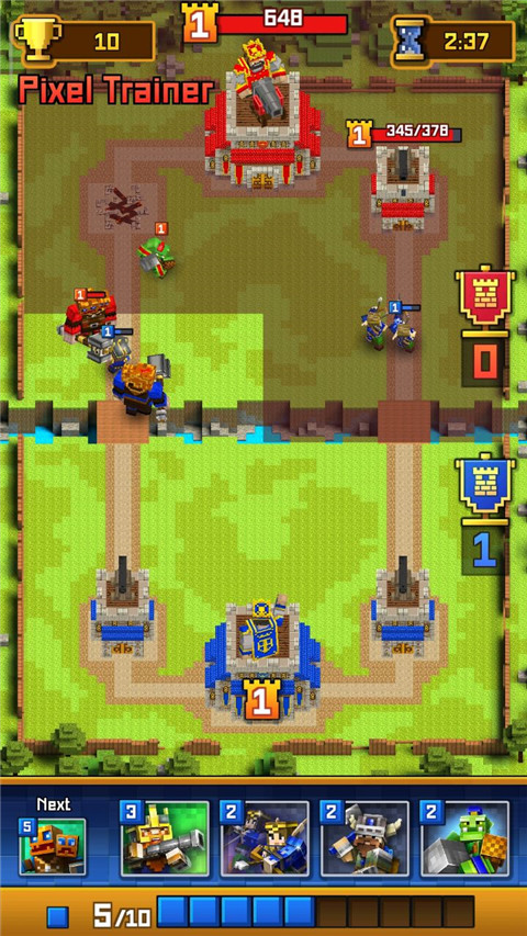 而且在战斗完成之后,像素皇室战争官方正版游戏还会根据玩家的表现赠送给玩家不等的宝箱奖励,而玩家则可通过不断的开启宝箱来获取兵种卡片,并利用卡片强化来获得更高的战斗力快速成长为真正的勇士哦,同时还更支持实时匹配对战PK、2V2等玩法,支持每日千万玩家在线PVP对战,力图带给你更加耳目一新的策略卡牌对战体验!