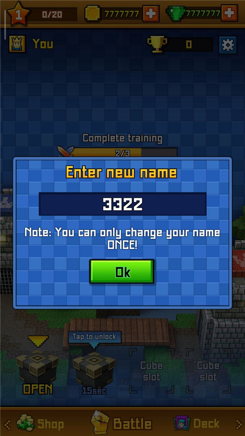 1、安装并打开本站提供的像素皇室战争,首先开局一定要给自己取个好听的名字哟