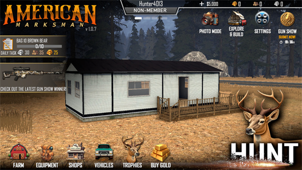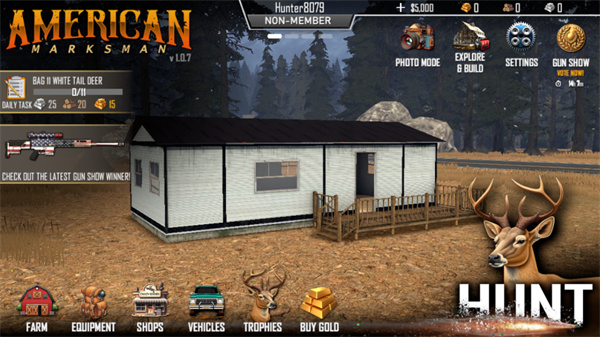 1、双击打开美国神枪手手游,点击右下角的鹿进行游玩;