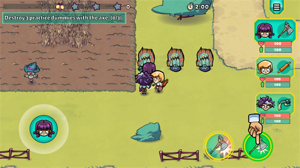 5、进入关卡后你需要通过点击右下角的攻击按钮来进行攻击,通过左下角的摇杆来进行移动;