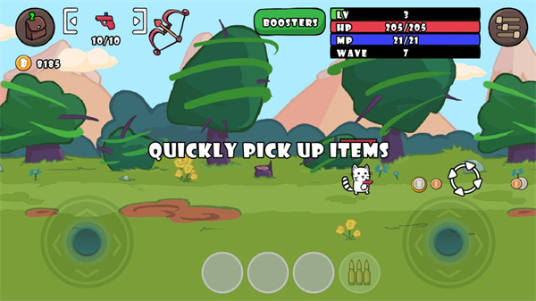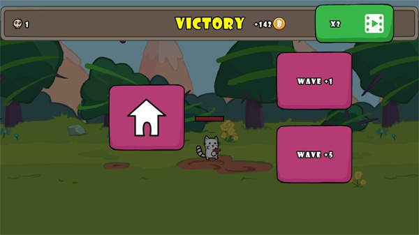 2、简单的横版战斗手游,操作猫咪射击怪物,击退怪物,就能获得胜利。