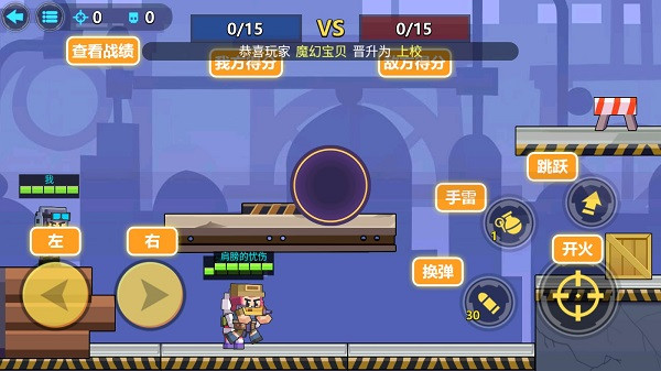 3、在这里针对游戏内各个按钮的介绍非常详细,其中左侧的“左”和“右”可以控制角色的移动,右边的各个图标分别代表了换弹、手雷和跳跃以及开火。
