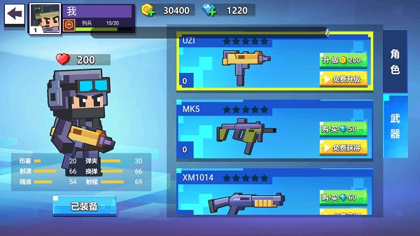 了解了操作方法,接下来就是提升战力里,这里除了对于操作的控制之外,关键的就是武器选择,打开武器库,在这里你会发现好多武器,具体玩家可根据自己的节奏来搭配武器。
